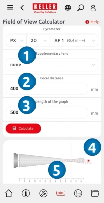 The field-of-view calculator and emissivity calculator are useful tools for selecting and commissioning the devices. For quick help, the App gives you direct access to the service hotlines and local contacts. The ticket system offers the possibility for simple and fast communication with the service team. The Troubleshooting Guide provides support in systematically finding solutions to technical problems.