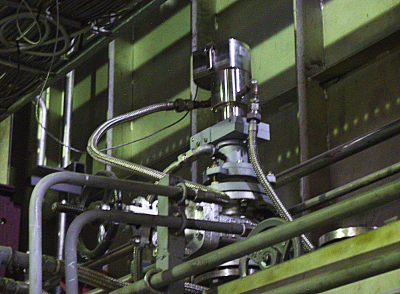 Pyrometers with a separate optical measuring head are used due to the high ambient temperature at the measuring location. An optical fiber transmits the infrared radiation to the electronics mounted in a safe area.